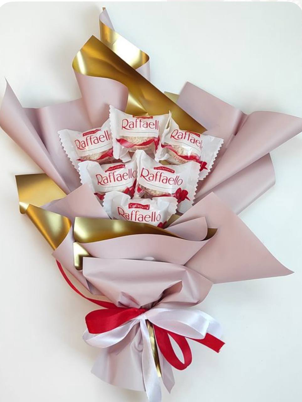 Невеликий, стильний та універсальний — цей міні-букет із 6 цукерок Raffaello стане приємним знаком уваги для колег, партнерів чи друзів.