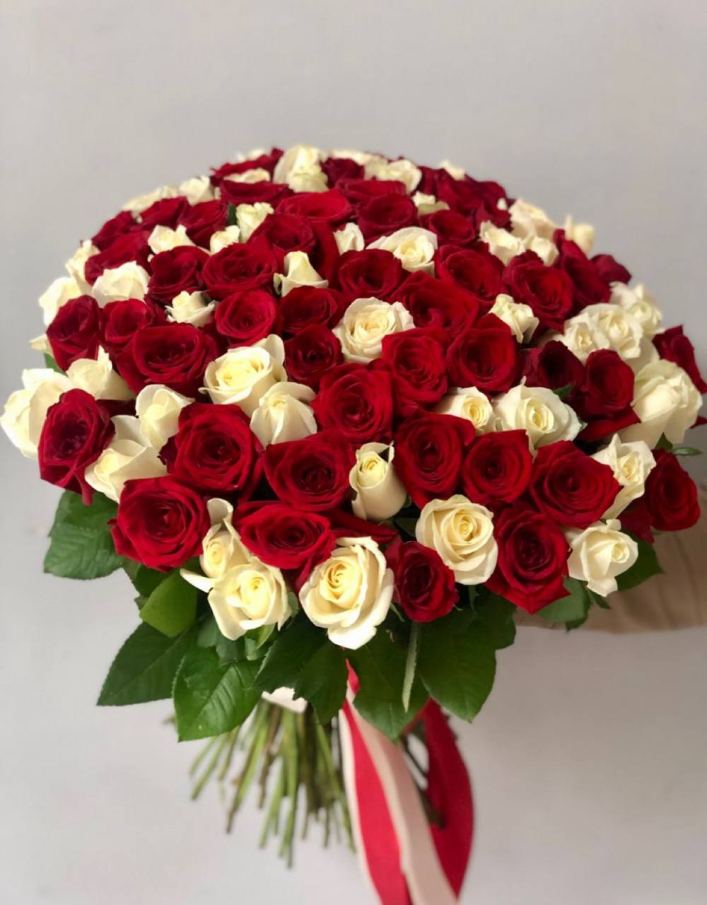 ❤️🤍 Букет із 151 червоної та білої троянди — гармонія любові та ніжності