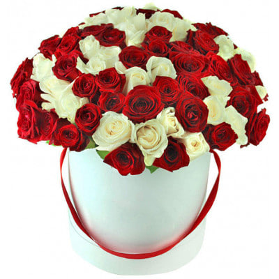 75 білих та червоних троянд в боксі Есмі