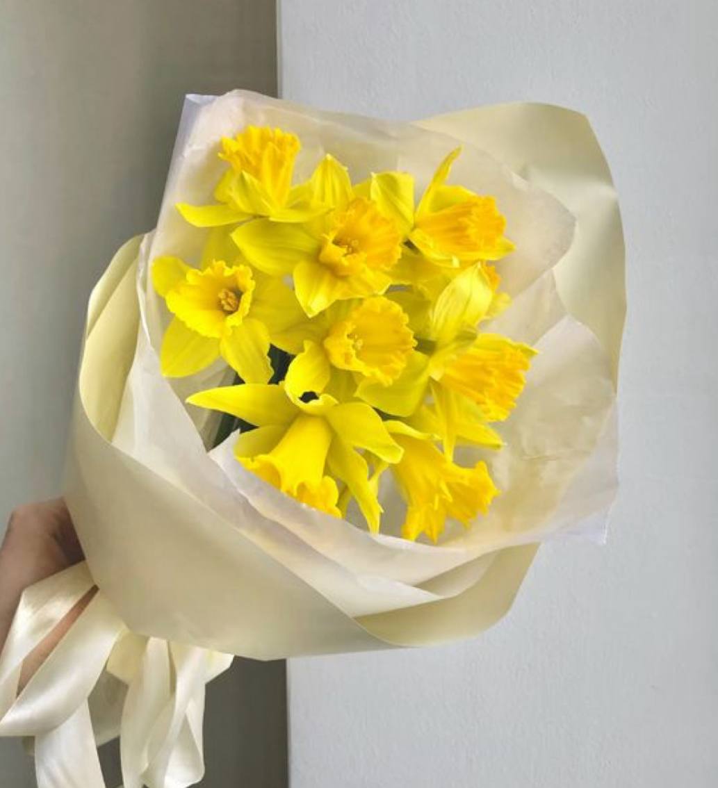 🔄 Відтінок нарцисів та оформлення можуть дещо змінюватися залежно від сезону та наявності.