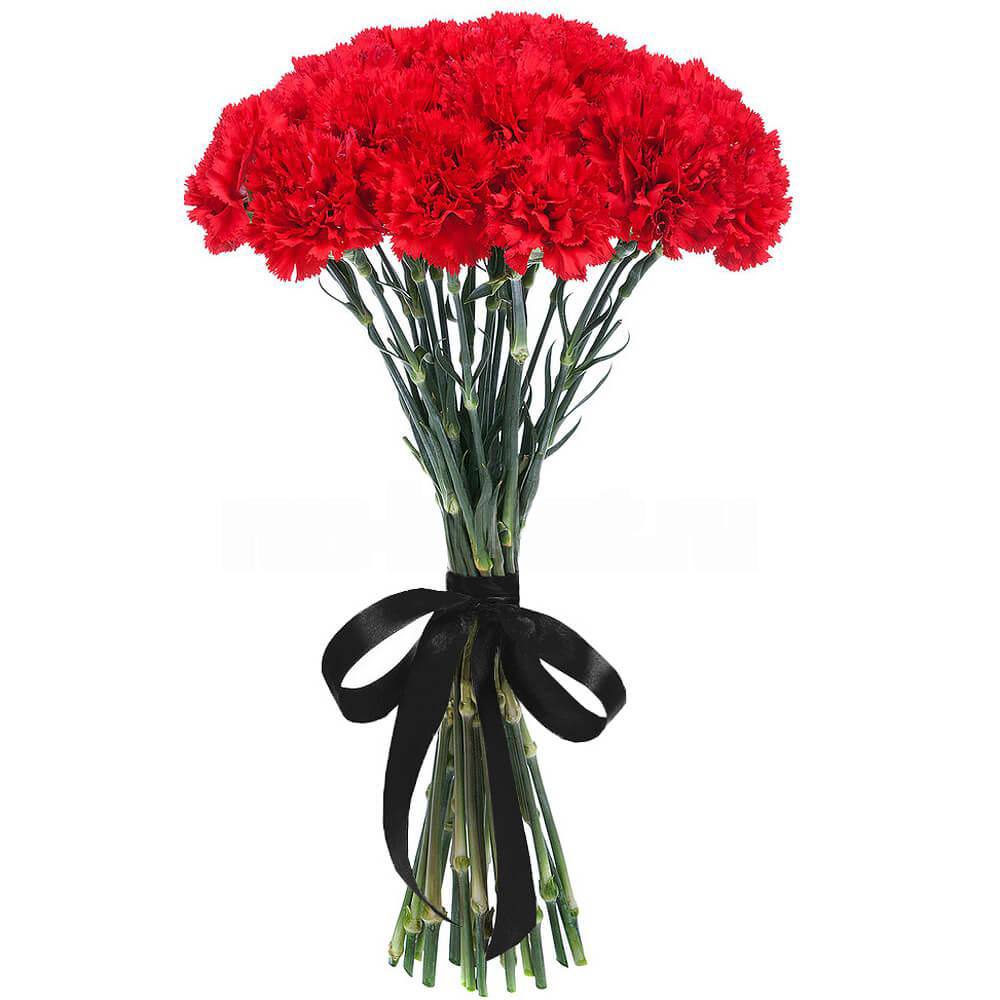 Букет із 18 червоних гвоздик під чорну стрічку