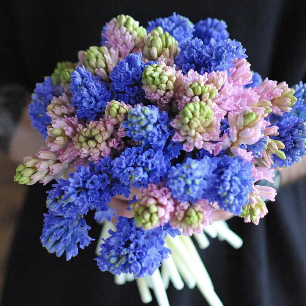 Розкішний букет із 35 кольорових гіацинтів — яскраве свято весни 🌸🌈 Насичені відтінки та дивовижний аромат створюють атмосферу радості, свіжості та незабутніх емоцій.