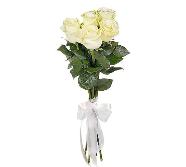 • 5 троянд (колір на вибір: білий, червоний або рожевий)