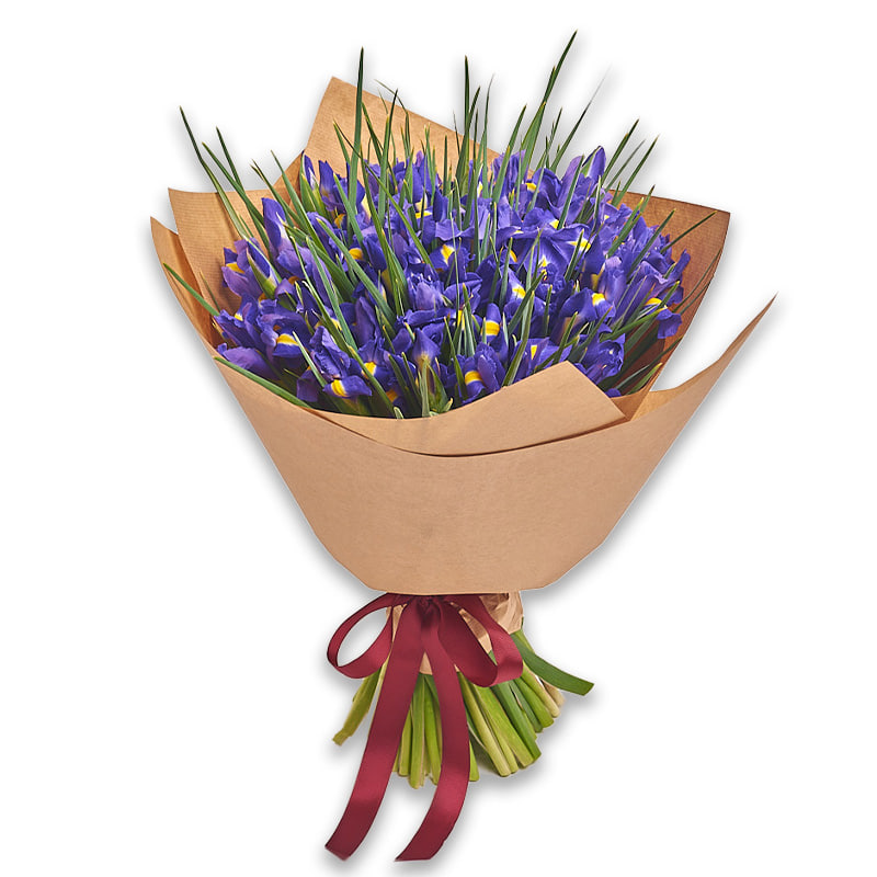 Розкішний букет із 51 ірису — яскрава та виразна композиція, що привертає увагу з першого погляду 💜 Іриси символізують надію, щирість і захоплення, тому такий букет стане особливим подарунком для важливої людини.
