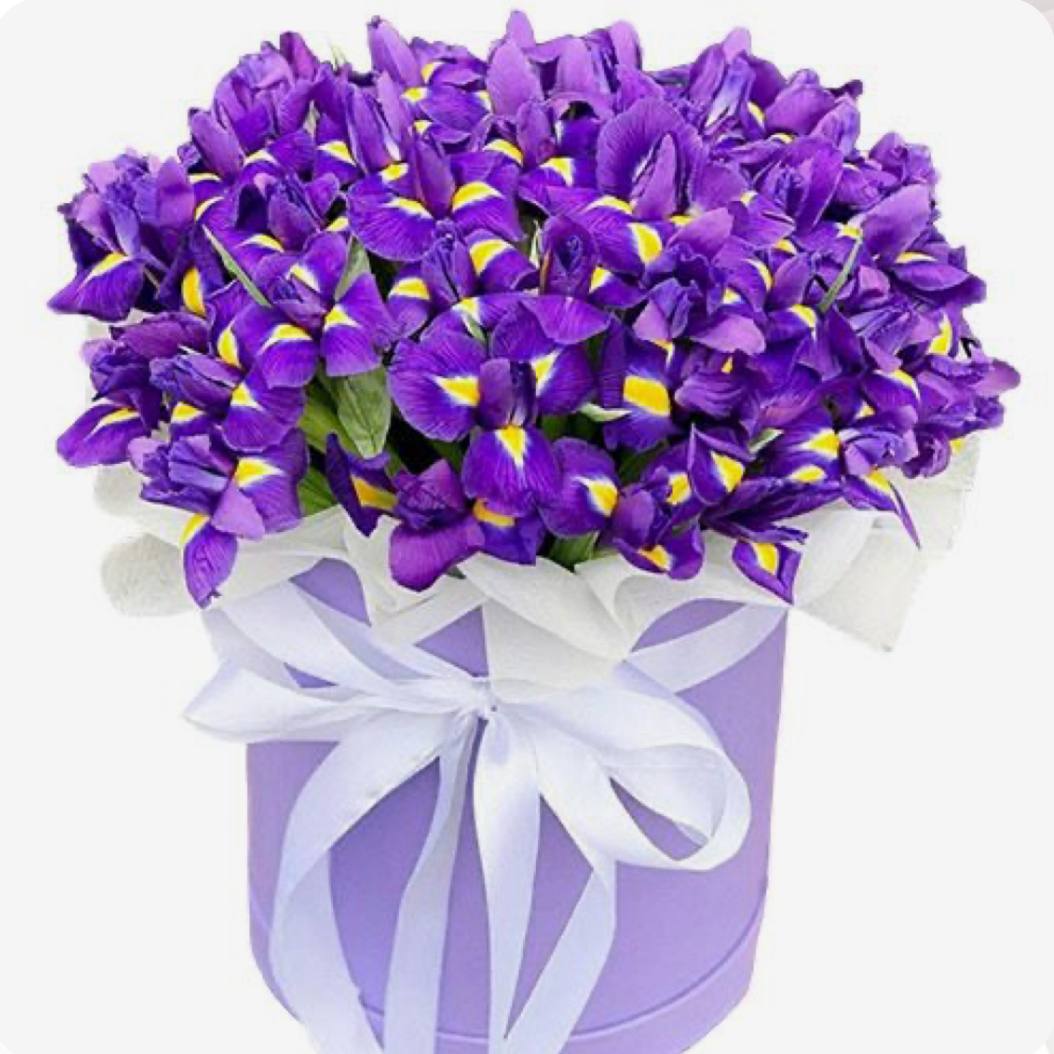 Розкішний букет в боксі із 75 ірисів 💜