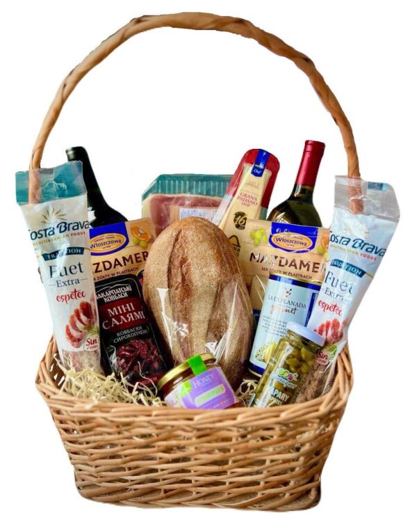 Дизайн кошика та зазначені інгредієнти можуть змінюватись в залежності від сезону, регіону доставки та ваших індивідуальних уподобань. У разі відсутності деяких складових, вони будуть замінені на рівноцінні аналоги з урахуванням концепції подарунка.