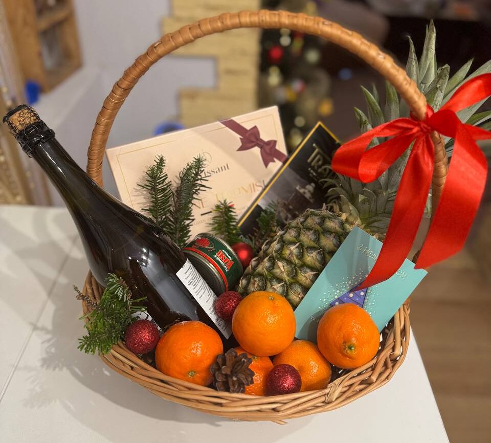 Напередодні новорічних свят кожен шукає універсальний та водночас ефектний подарунок для друзів, колег чи рідних. Цей подарунковий кошик поєднує в собі святкові делікатеси, фрукти та солодощі, створюючи атмосферу розкоші, тепла й справжнього новорічного настрою.