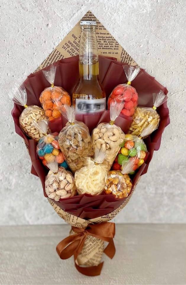 Ідеальний подарунок для справжнього цінителя пива та смачних закусок! Цей букет поєднує в собі найкраще для дружньої компанії або затишного вечора — смачні снеки, аромат і гарний настрій.