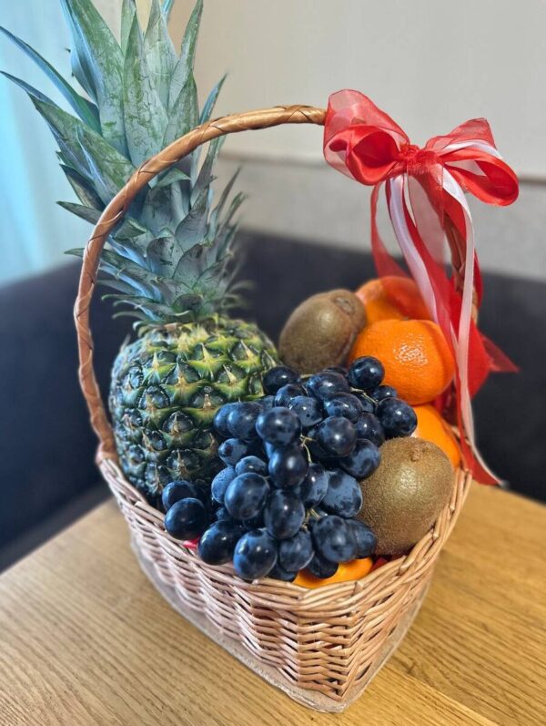 Яскравий, різноманітний і неймовірно апетитний — «Пілагея» створений для тих, хто любить дарувати радість. Соковитий ананас, стиглі апельсини, мандарини, ківі та виноград дарують справжнє відчуття літа. Підійде як для родинного подарунка, так і для корпоративного враження.
