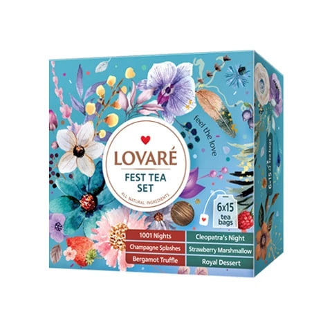🫖 Чай LOVARE Fest Tea SET — асорті з 6 видів, по 15 пакетиків кожного